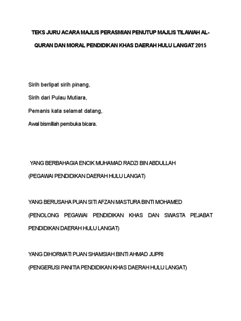 Contoh Teks Ucapan Perasmian Penutup Pdf